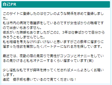 自己紹介文に、かなりエロいことが書かれており、童貞諸君は大興奮していると思います。