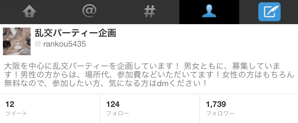 もっと詳しく調べてみると上のようなtwitterアカウントがあり、男性を募っているみたいです。