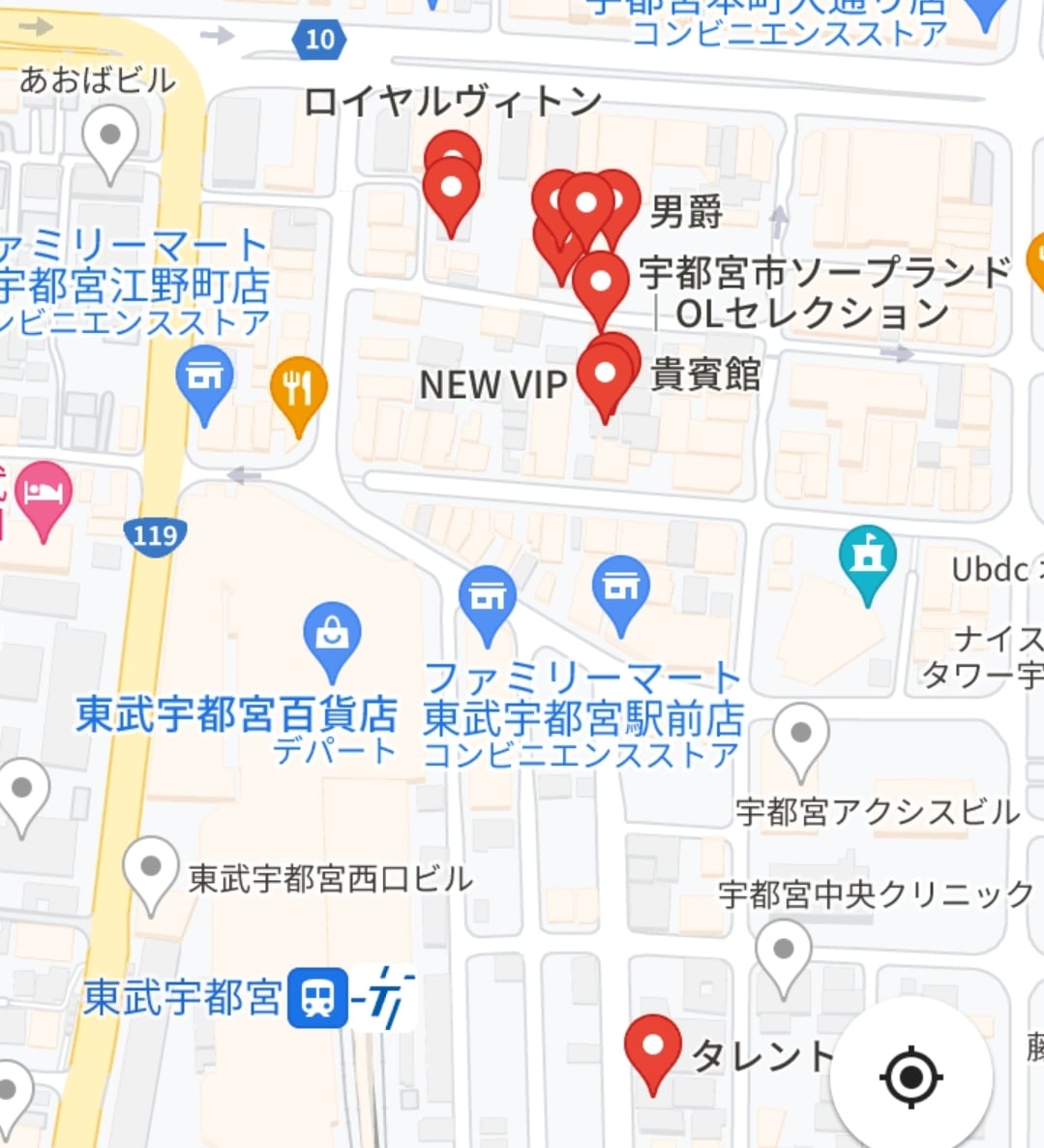 添付の地図画像を見てもらえると分かりますが、宇都宮のソープは一エリアに集結しています。